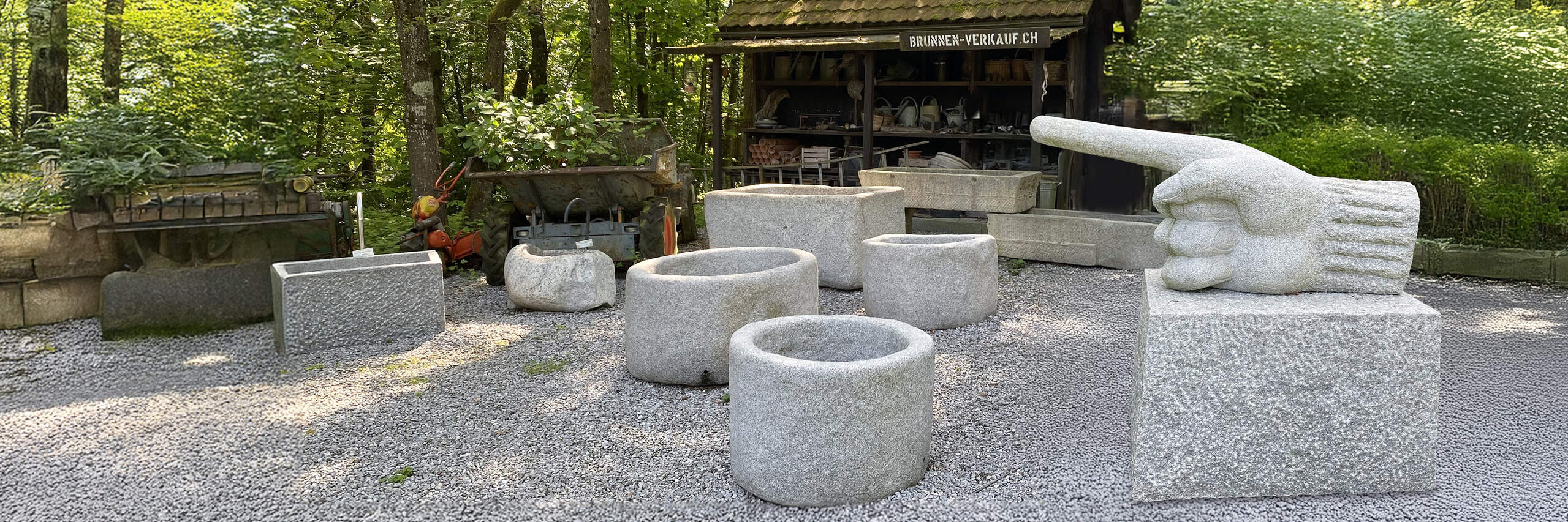 Bei uns entdecken Sie eine vielfältige Auswahl an Natursteinbrunnen, Findlingen und Granittrögen in verschiedenen Farben, Formen und Grössen. Jeder unserer Steine ist ein Unikat – massiv, witterungsbeständig und mit der unverwechselbaren Ausstrahlung der Natur.